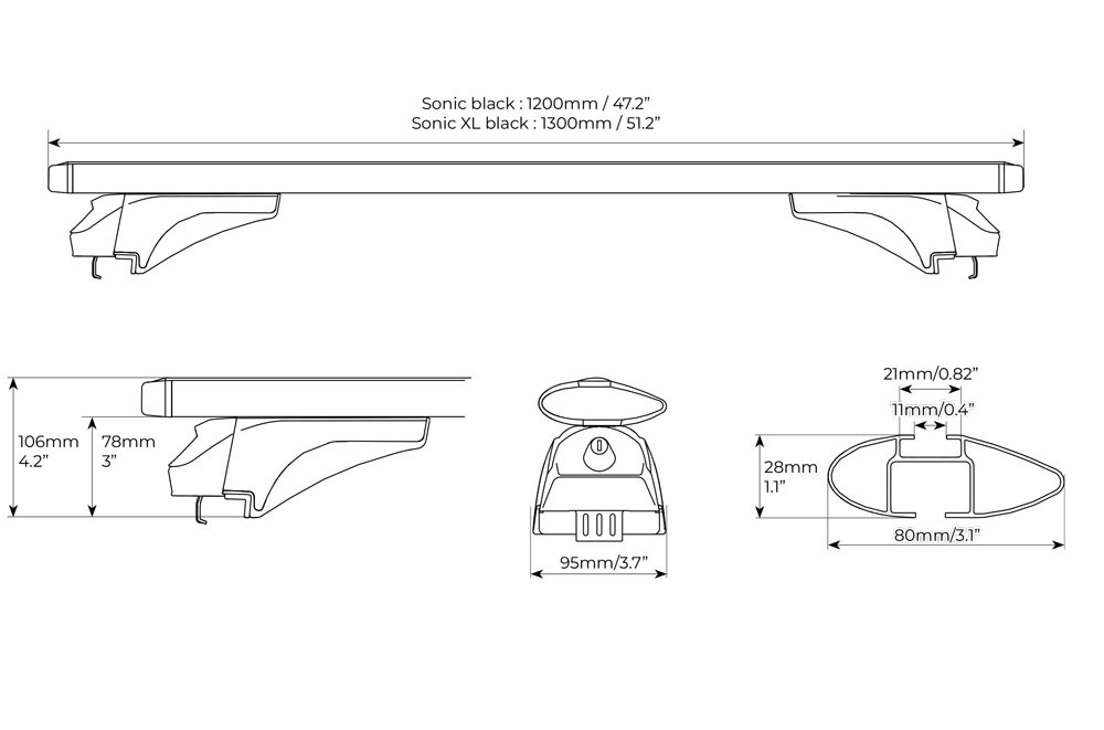 Bare transversale din aluminiu Menabo Sonic Black va ofera o flexibilitate sporita in transportarea bagajelor datorita capacitatii de incarcare de 75 kg, dar si a canalului standard pentru prindere cu profil T a diferitelor accesorii.