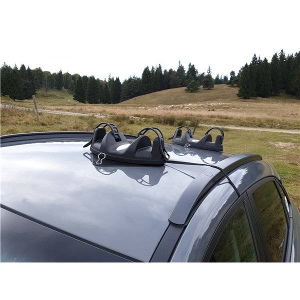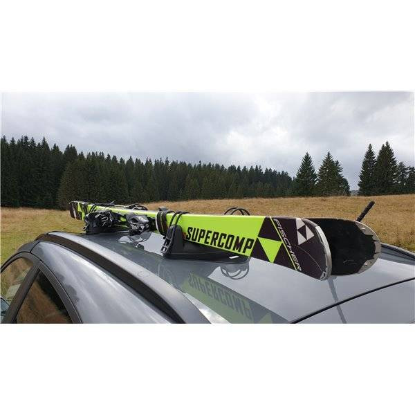 – suportul prezinta talpa de cauciuc si magnet puternic ce asigura o fixare ferma si fara zgarieturi si curele din cauciuc pentru prinderea schi-urilor